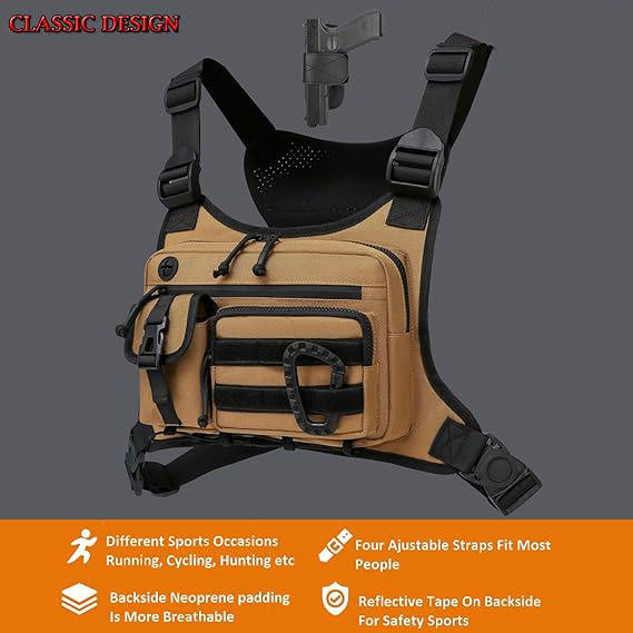 Échantillon gratuit Sac de poitrine tactique rétro pour femme avec bandoulière sous le bras en PU Sac à bandoulière multifonctionnel de mode extérieur Pur