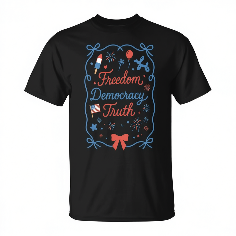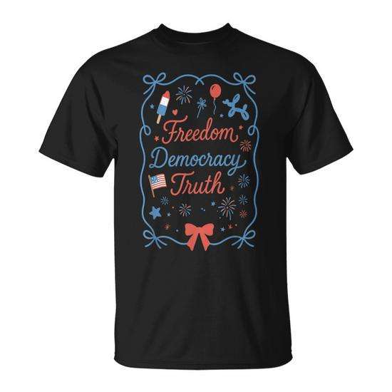 T-shirt Freedom Democracy Truth 4th Of July, design patriotique, unisexe, col rond, manches courtes, impression numérique