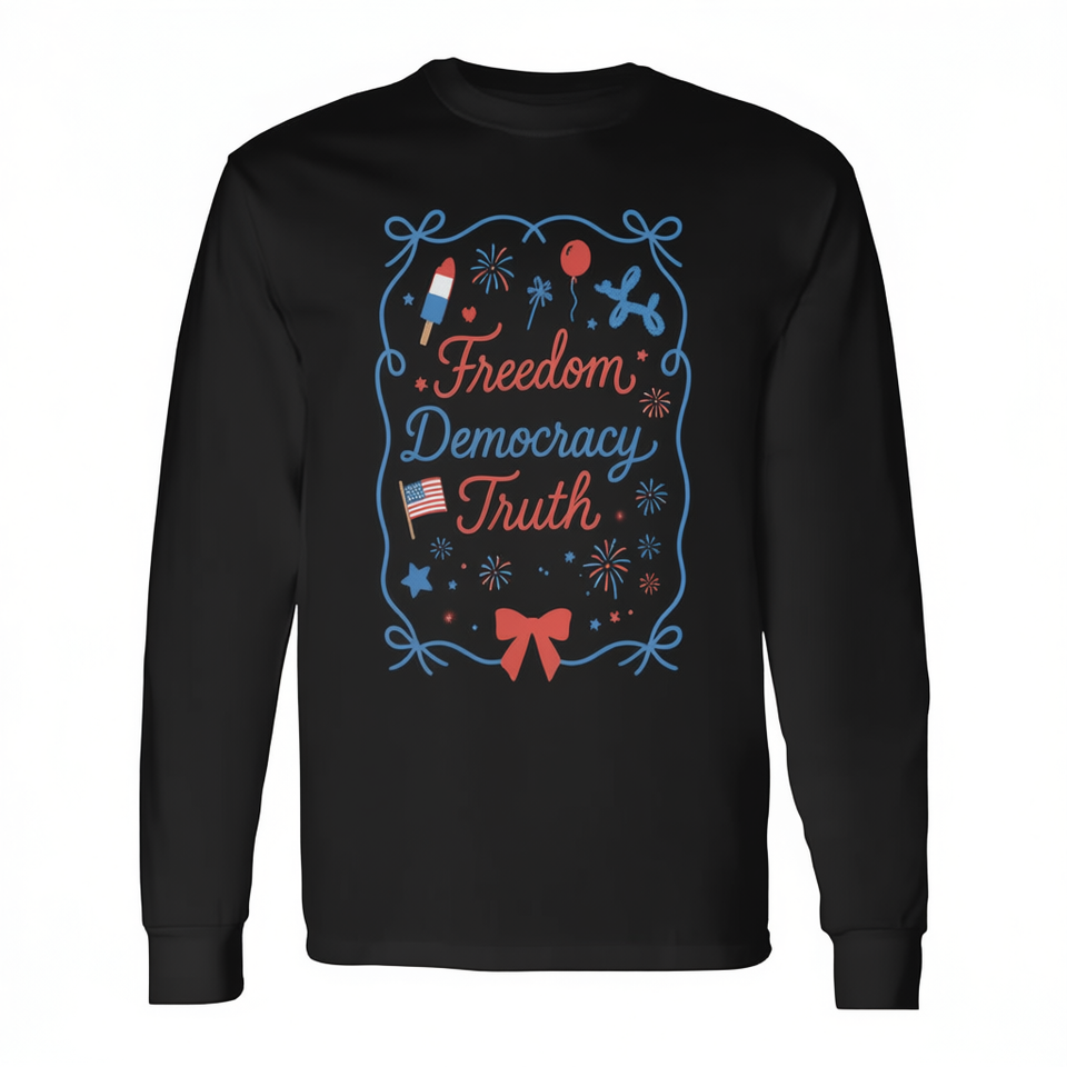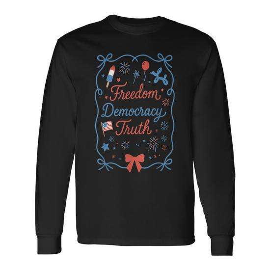 T-shirt à manches longues Freedom Democracy Truth 4th Of July, design patriotique, col ras du cou unisexe, taille adulte, impression numérique