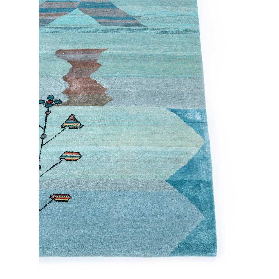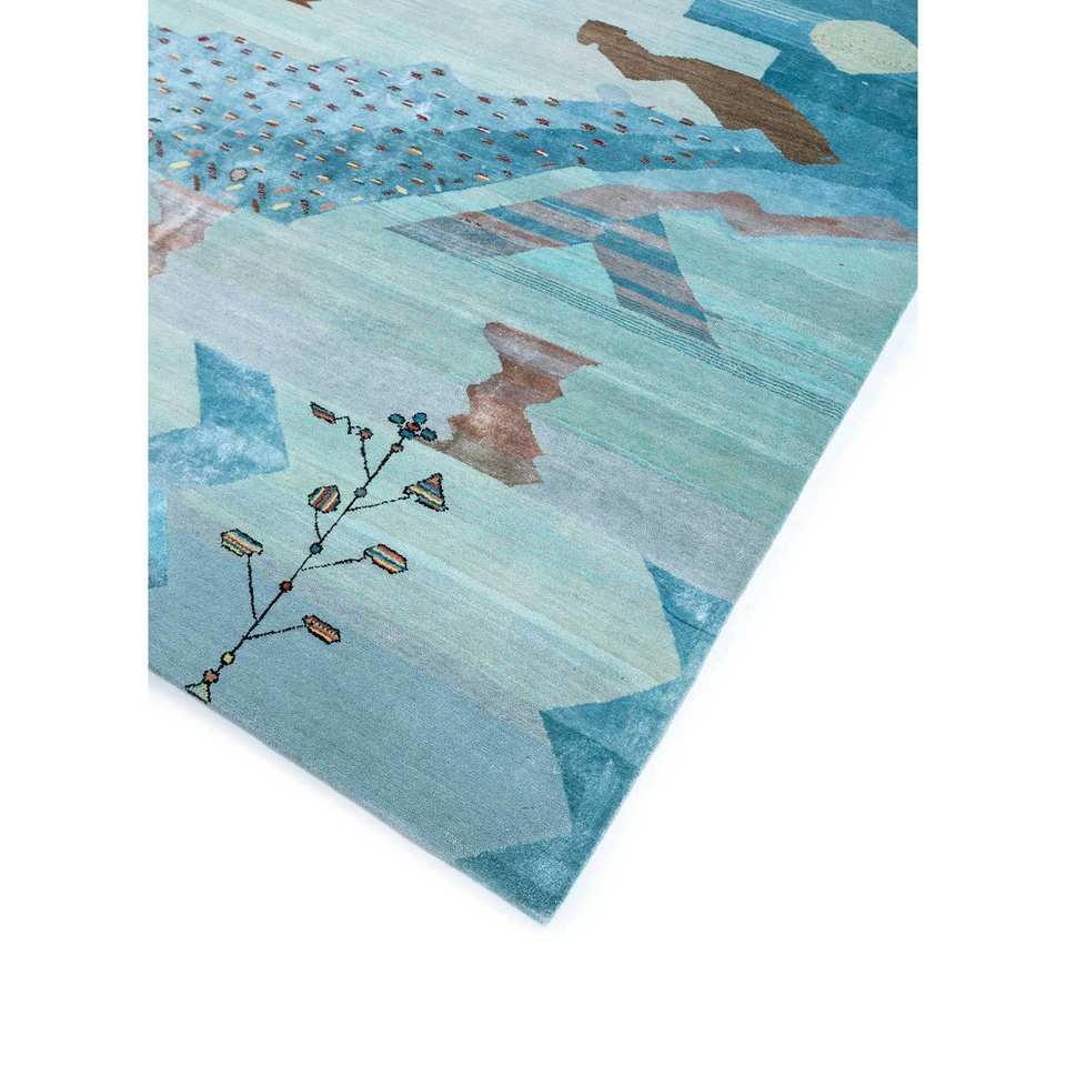 Tapis en laine et soie de bambou noué à la main Freedom Manchaha à motif abstrait bleu pour la décoration de la maison et du salon - Les-1412