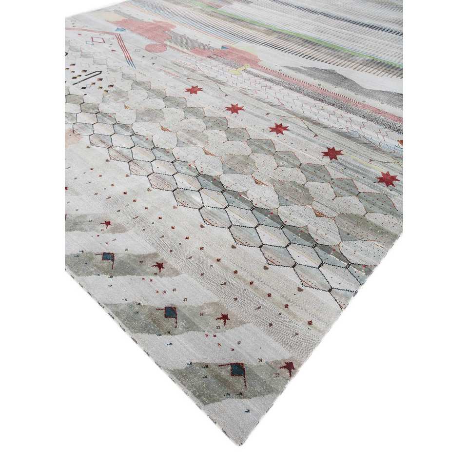 Tapis en laine et soie de bambou noué à la main à motif géométrique bleu Freedom Manchaha pour la décoration de la maison et du salon - Les-8183