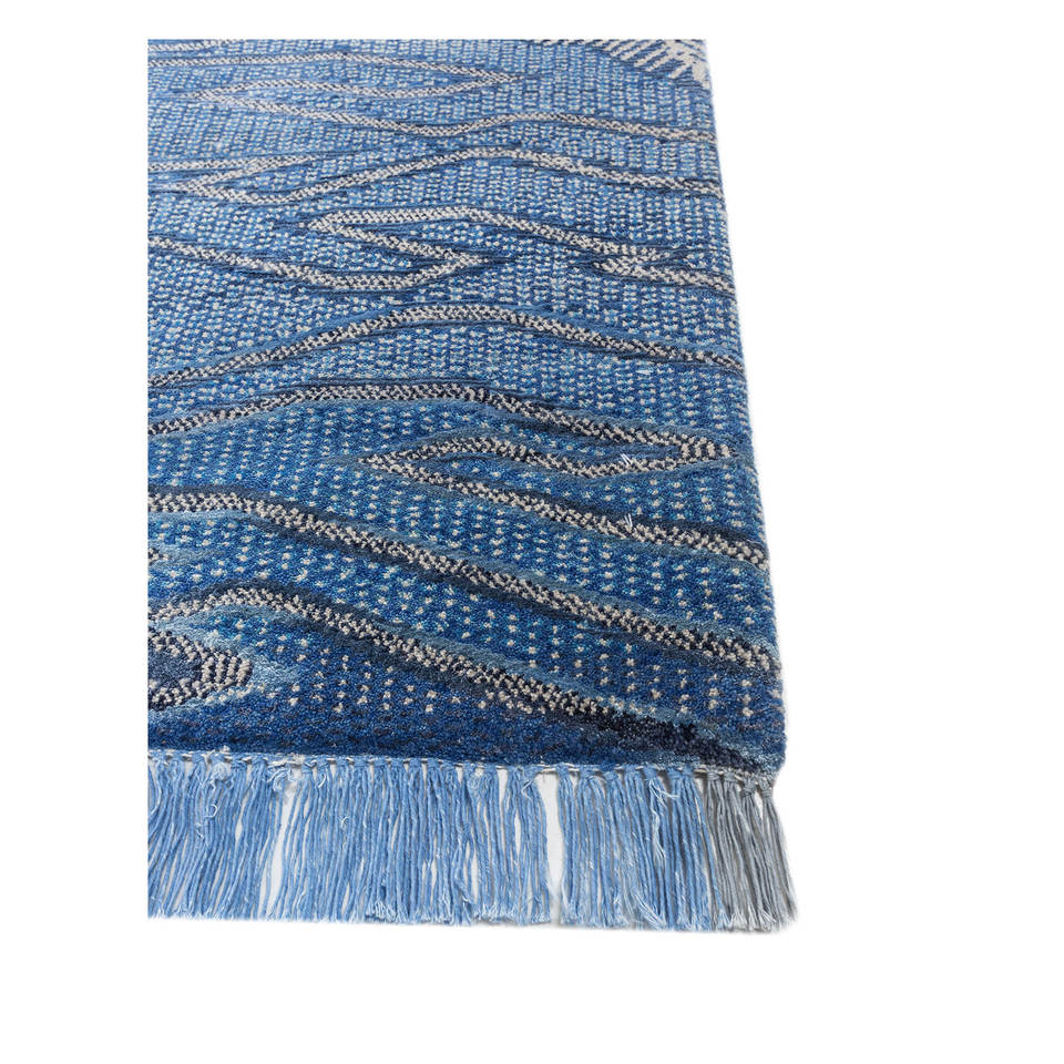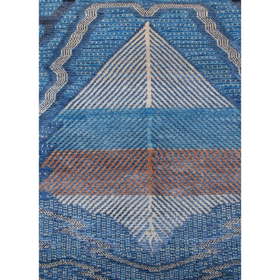 Tapis en laine et soie de bambou noué à la main à motif géométrique bleu Freedom Manchaha pour la décoration de la maison et du salon - Les-8329