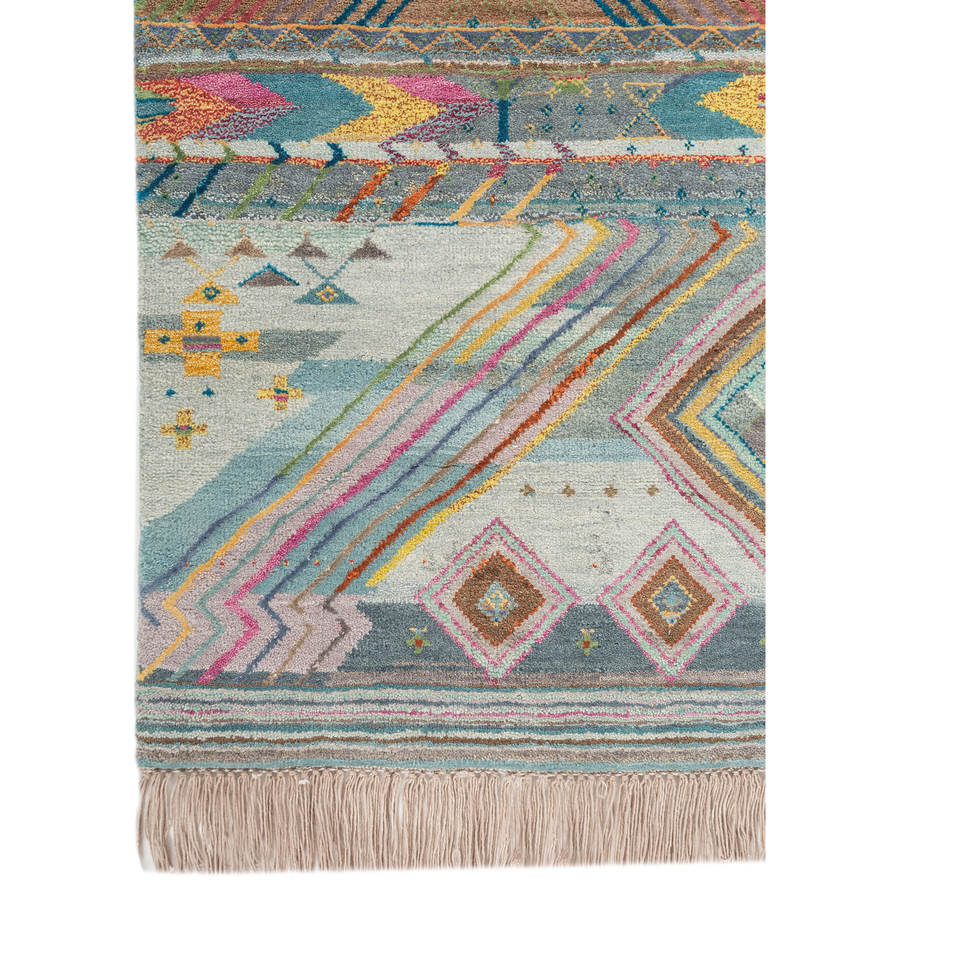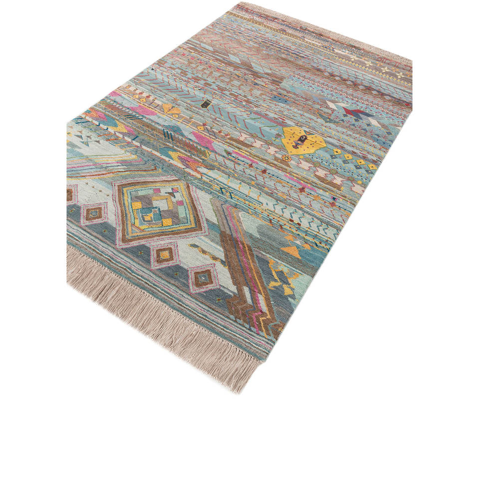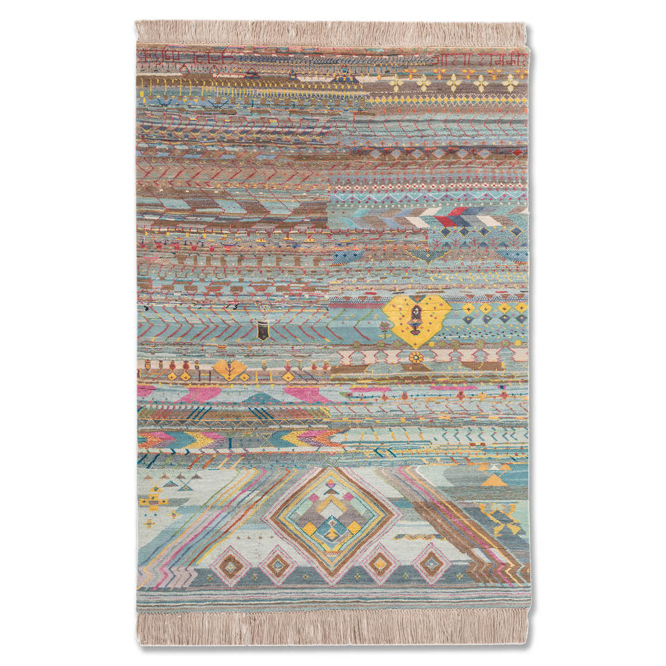 Tapis en laine et soie de bambou noué à la main à motif géométrique bleu Freedom Manchaha pour la décoration de la maison et du salon - Les-8341