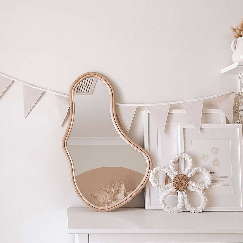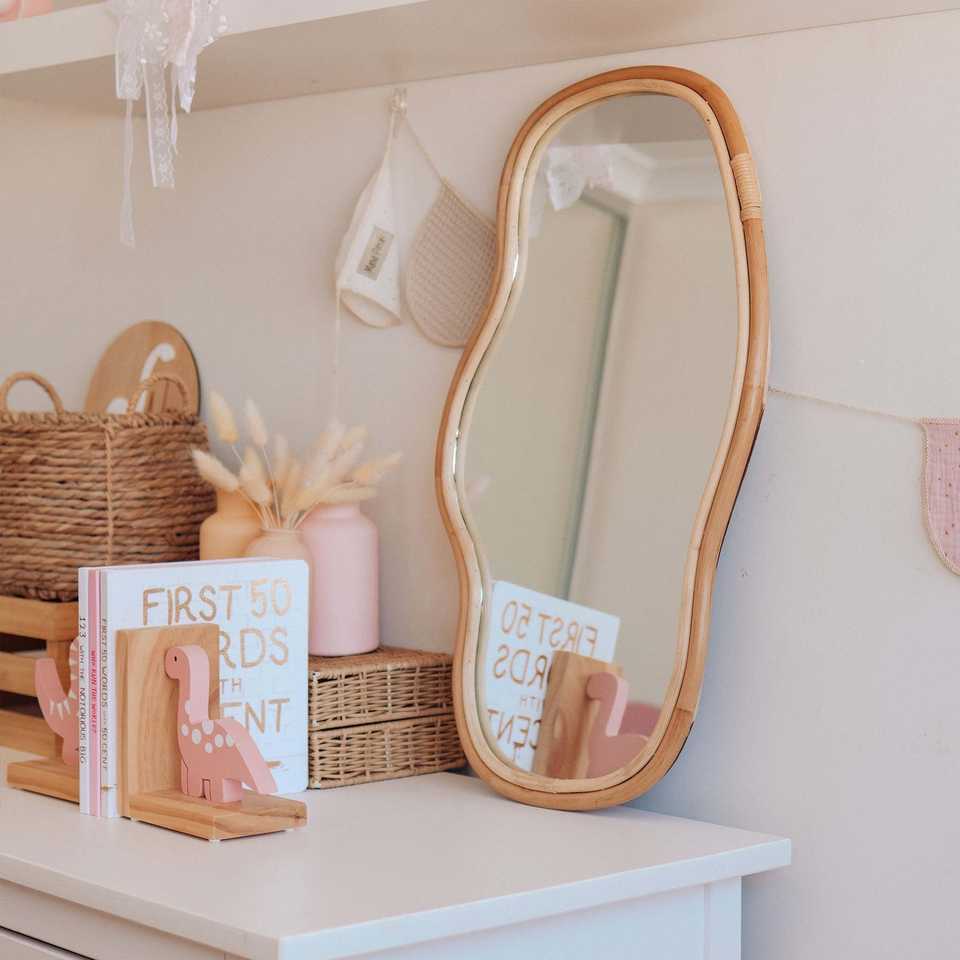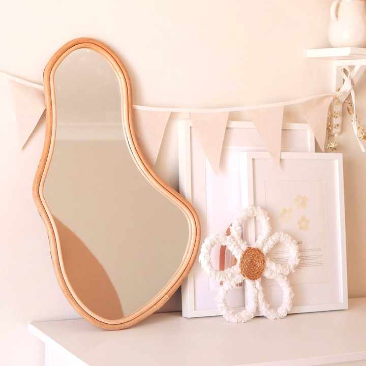 Miroir incurvé de forme libre, prix de gros le plus bas, qualité supérieure, style bohème moderne, petits miroirs incurvés en rotin pour le maquillage