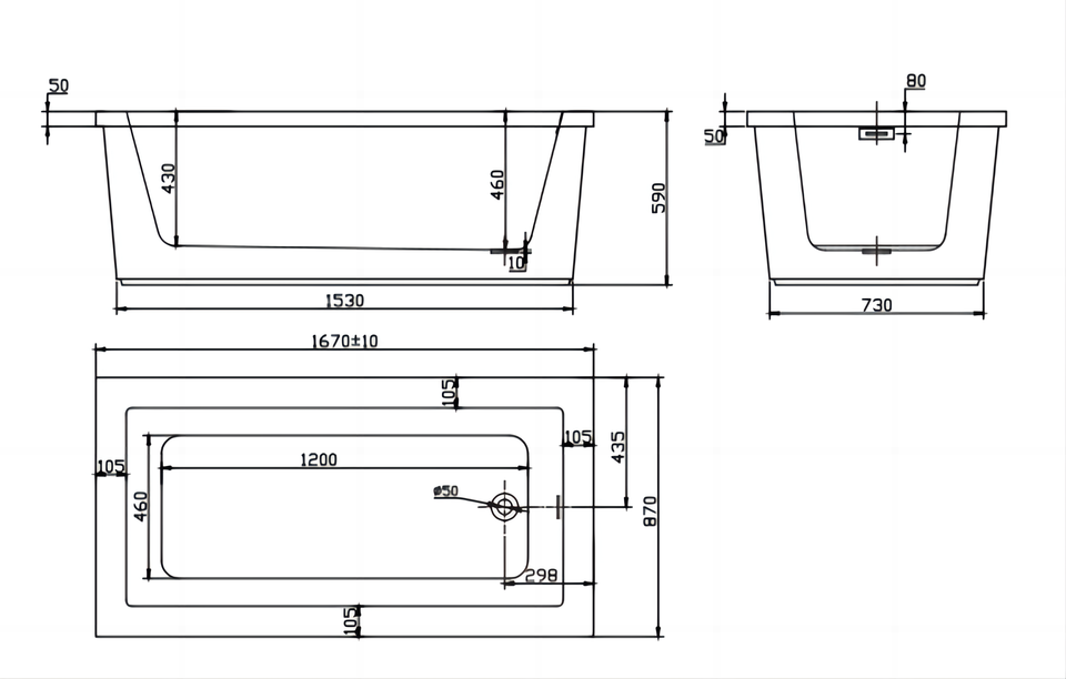 Dimension in mm:1670L x 870W x 590H mm