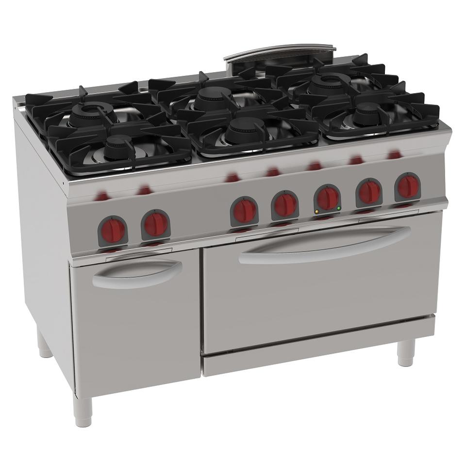 Cuisinière à gaz autoportante avec 6 brûleurs et 1 four électrique statique GN 2/1-1200x700x900mm 30 Kw + 4.7 Kw 400/3V-35360317 EURAST