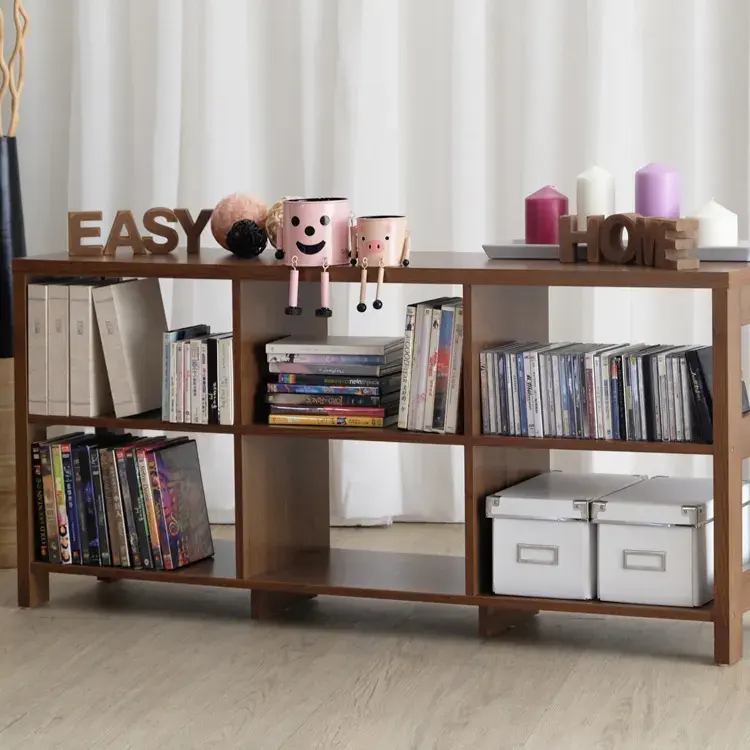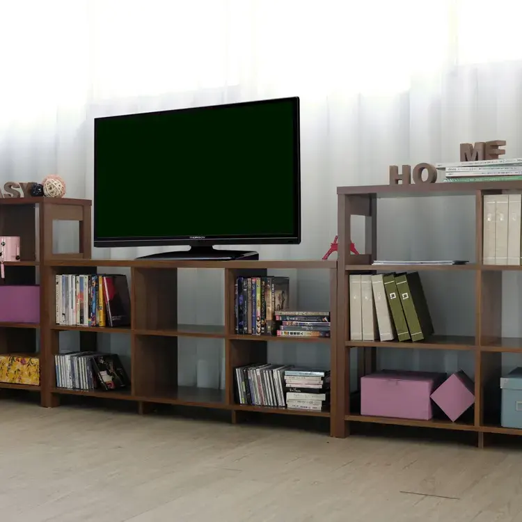 Meuble TV moderne autoportant à 6 unités avec étagères en bois et étagère de rangement pour salon