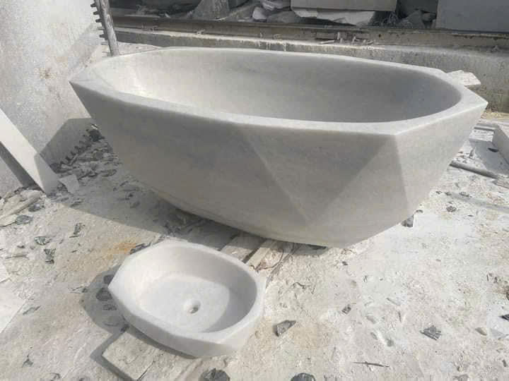 Freestanding Modern Oval Solid Surface Bathtub-Smooth Matte Natural Stone Soaking Tub for Bathrooms