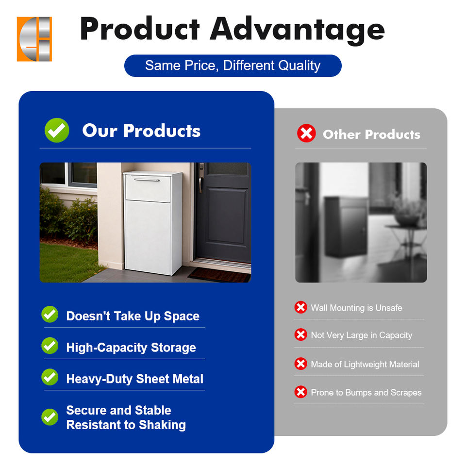 Boîte aux lettres autoportante en acier galvanisé avec revêtement en poudre imperméable pour la réception de colis et de courrier, utilisation en extérieur, blanc