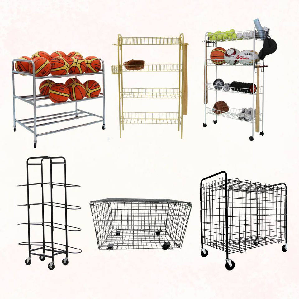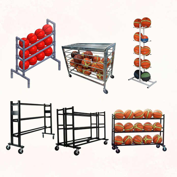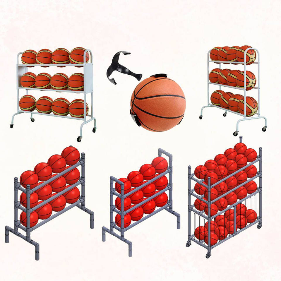 Utilisation efficace de l'espace au sol avec un support vertical autoportant pour le rangement du basket-ball