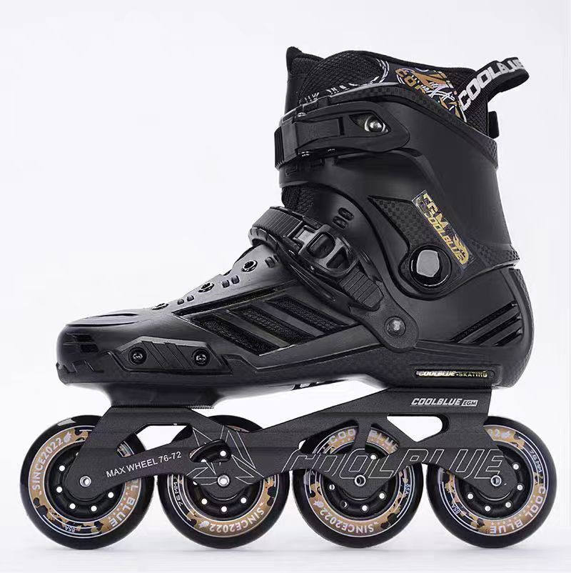 Patins à roulettes en ligne pour adultes Freestyle Slalom Hard Boot 4WD, matériau professionnel des roues en aluminium, châssis en aluminium, matériau PU, chaussures de patinage
