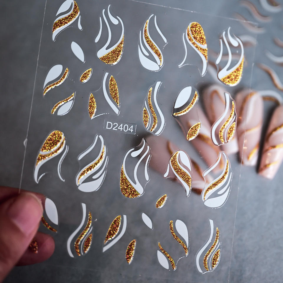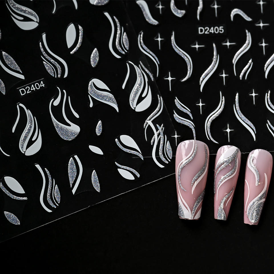 Autocollants Français 3D Métallique Paillettes Ligne Nail Art Adhésif Bande Incurvée Or Argent Transfert Slider Manucure Decal
