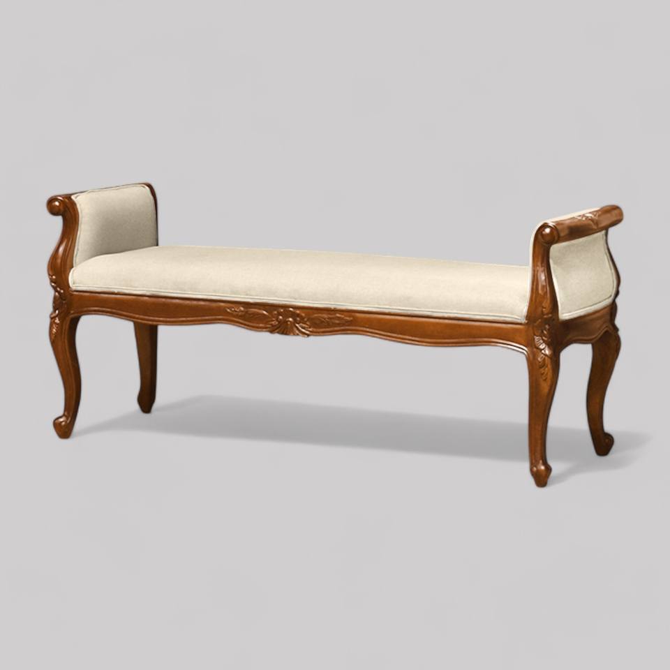 Keyword:Upholstered Fabric Carved Wood Bench Bedroom Dining Living Room