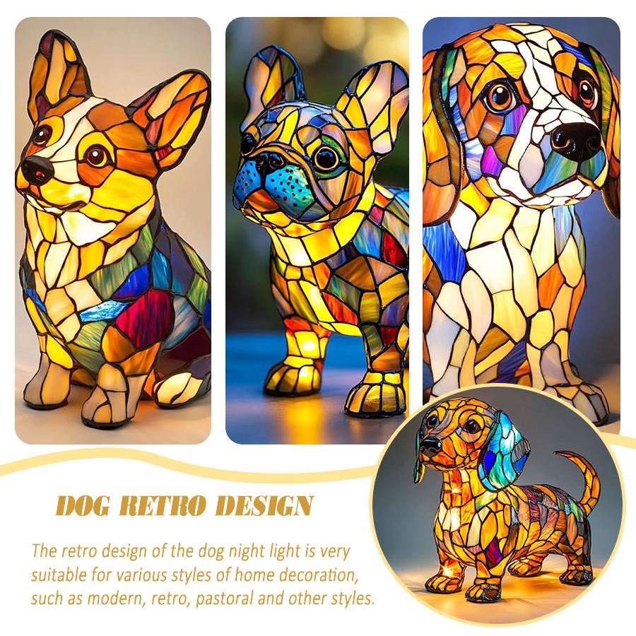 Bouledogue français et carlin LED veilleuse série de lampes animales mignonnes lueur ambiante chaude résine tachée artisanat cadeau de table pour les amoureux des chiens