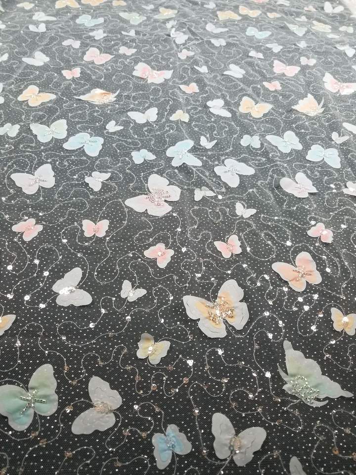 Nom du produit:Tissu de tulle de broderie de la flore 3d