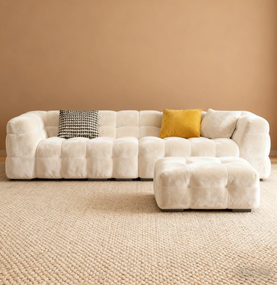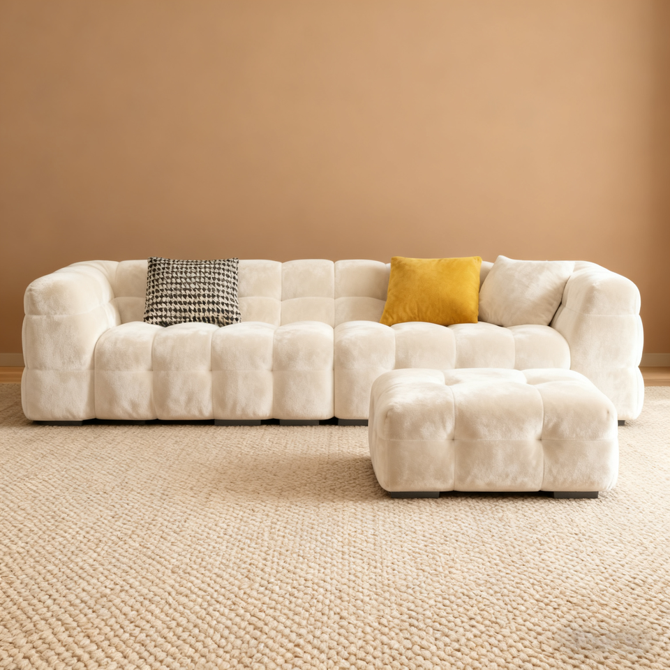 Nom du produit:Canapé en mousse nuage, design capitonné incurvé de style crème française, assemblage facile