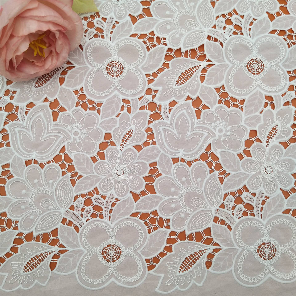 Dentelle florale brodée française 100% polyester Tissu soluble à l'eau pour vêtements Textiles de maison Tissus