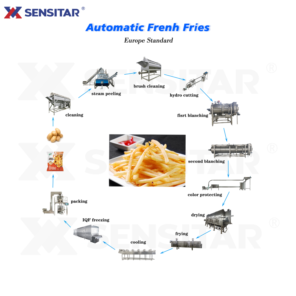 Nom du produit:Ligne de production de pommes de terre frites françaises Usine de fabrication de pommes de terre frites