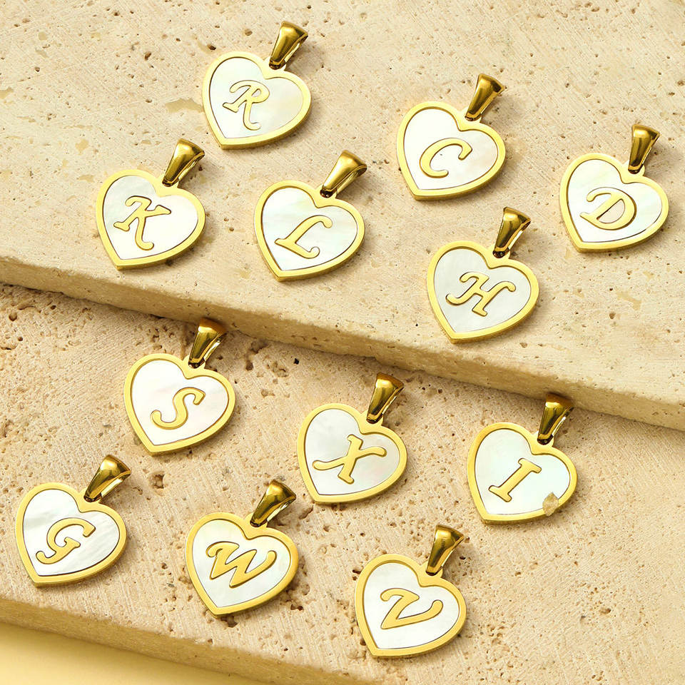 Français Coeur Shell Capital Lettre Initiale En Acier Inoxydable DIY Collier Pendentif pour Femmes A-Z Alphabet Anglais Symbole Chrétien