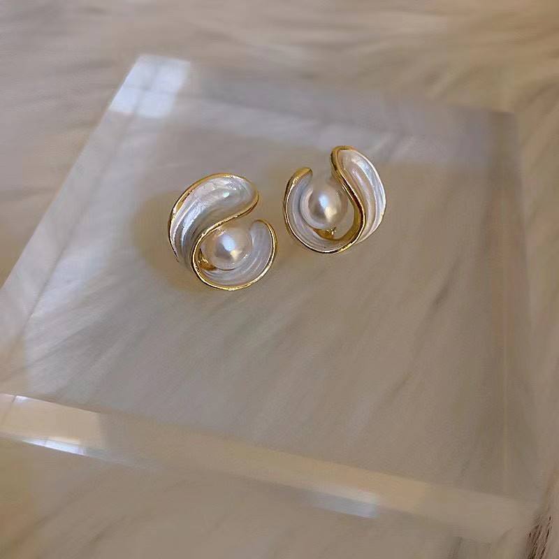 Boucles d'oreilles en perles d'eau douce rétro haut de gamme françaises, émail brossé, argent pur S925, cuivre plaqué or, préservation de la couleur