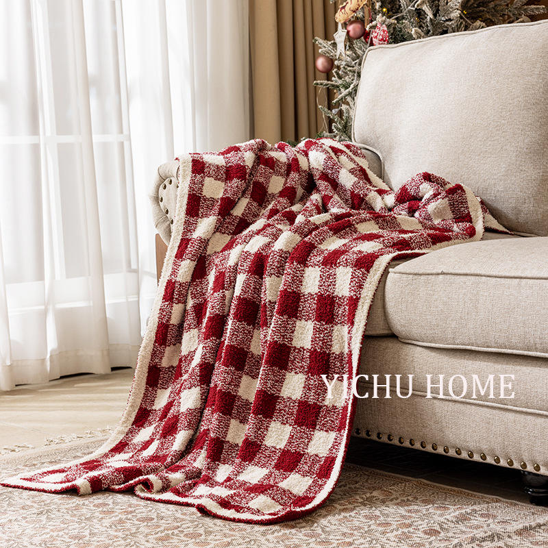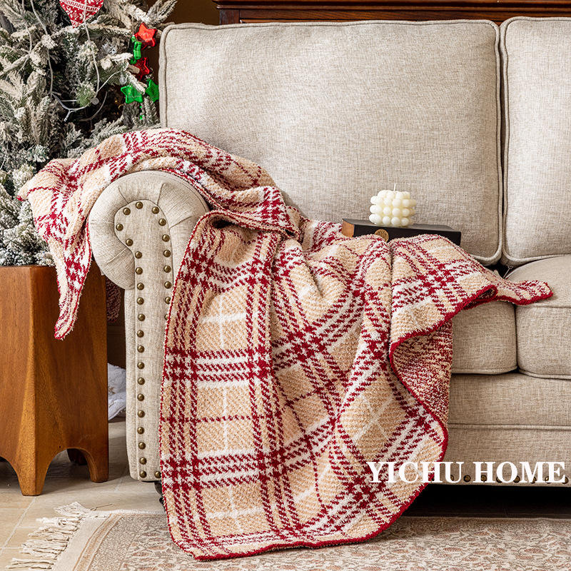 Couverture Raschel en polaire rouge française de haute qualité motif géométrique Plaid Design pour bureau sieste châle utilisation décorative de noël pour