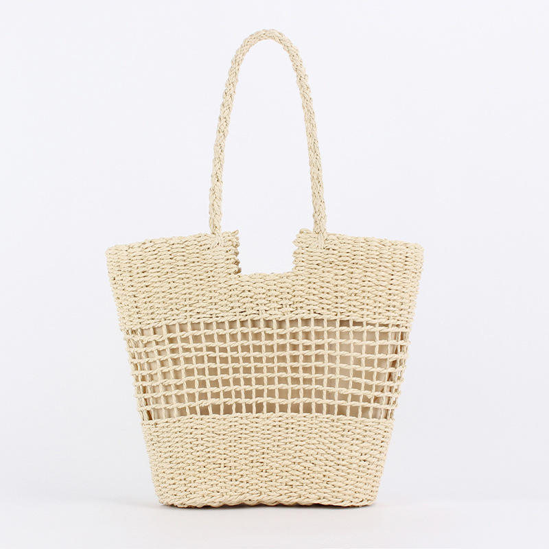 Sac tissé à la main en corde de papier ajourée, grande capacité, pour les vacances et les voyages, avec fermeture éclair et doubles bretelles, idéal pour la plage estivale Tanjing
