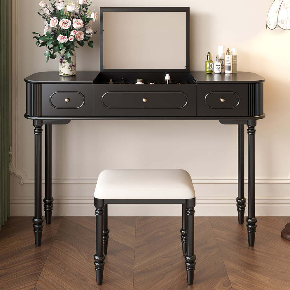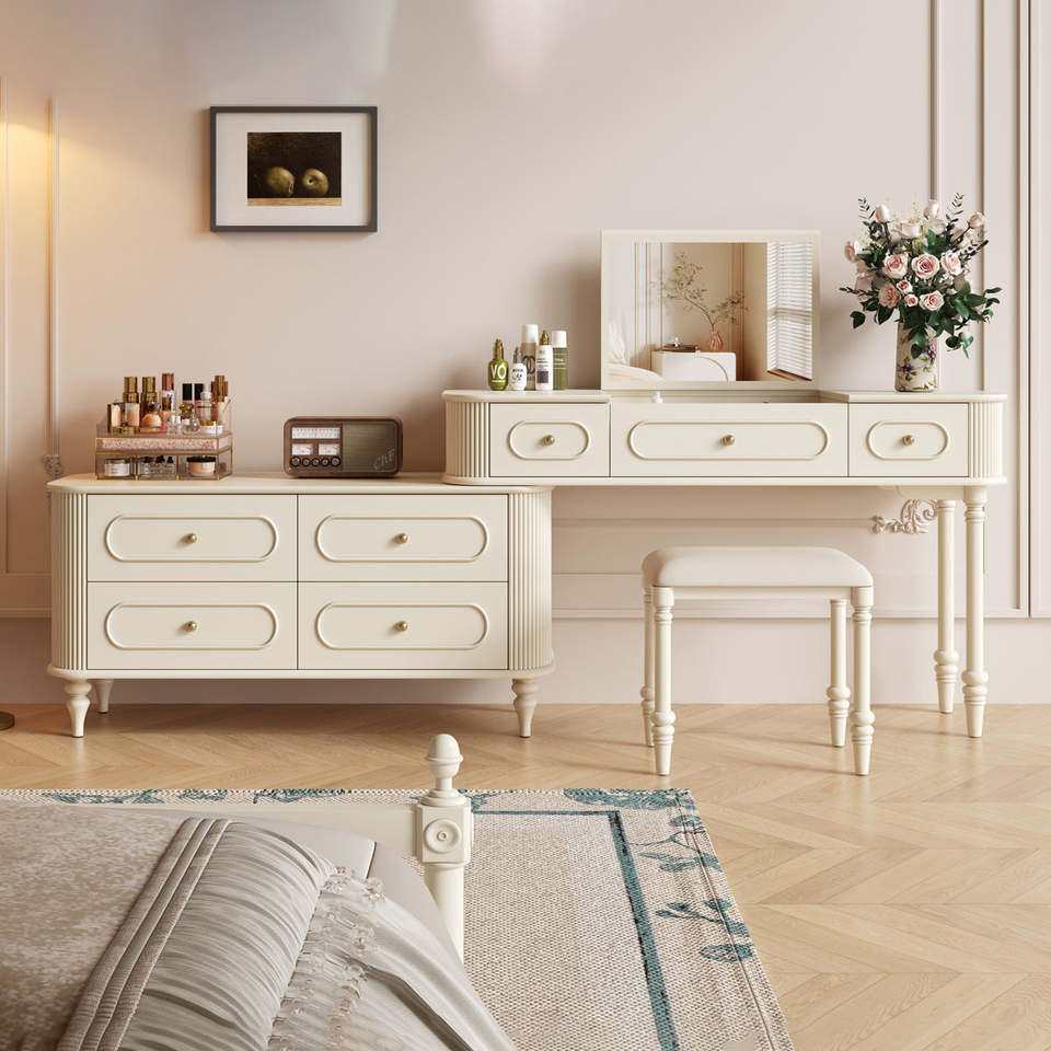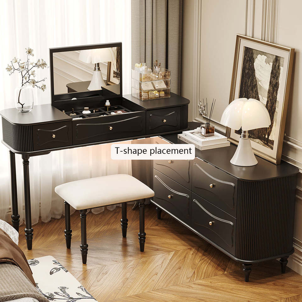 Ensemble de meubles de coiffeuse d'importation française miroir éclairé personnalisé laqué rose beige gris tabouret inclus