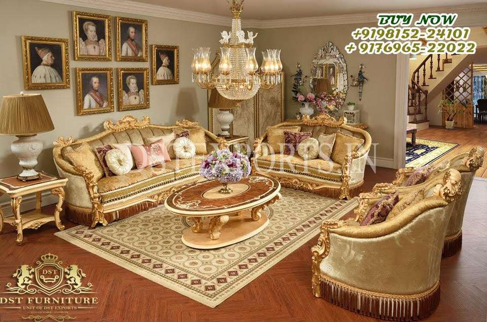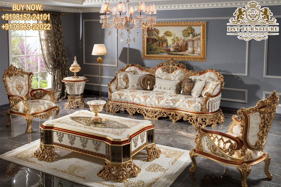 French Living Room White & Golden Glossy FurnitureProduct name