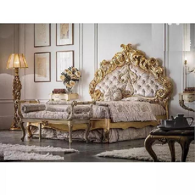 French Look Teak Wood Bed With Side Table Queen Size Golden Bed With Nightstand Baroque Style Wooden Bed With Nightstands