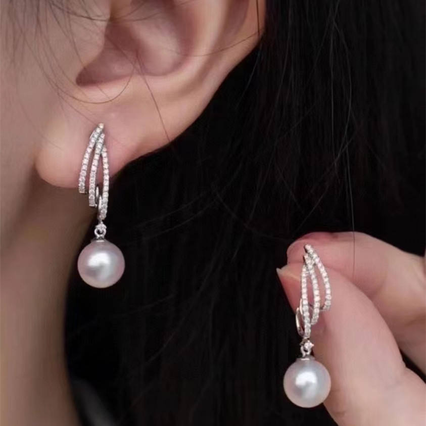 Boucles d'oreilles en perles rondes d'eau douce de luxe françaises, collier tendance haut de gamme, nouvelle sortie