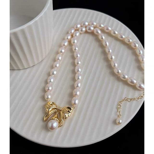 French Luxury Long-Sleeve Women's Sweatshirt Light Luxury 'Fugitive Princess' Bow Natural Freshwater Pearl Pendants Charms