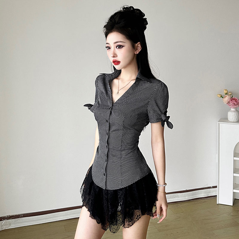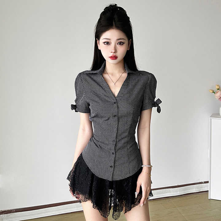 Chemisier Chic et Élégant pour Femme, Style Bureau Français, Boutonné, Taille Cintrée, Manches Courtes Bouffantes à Nouer, Haut de Travail