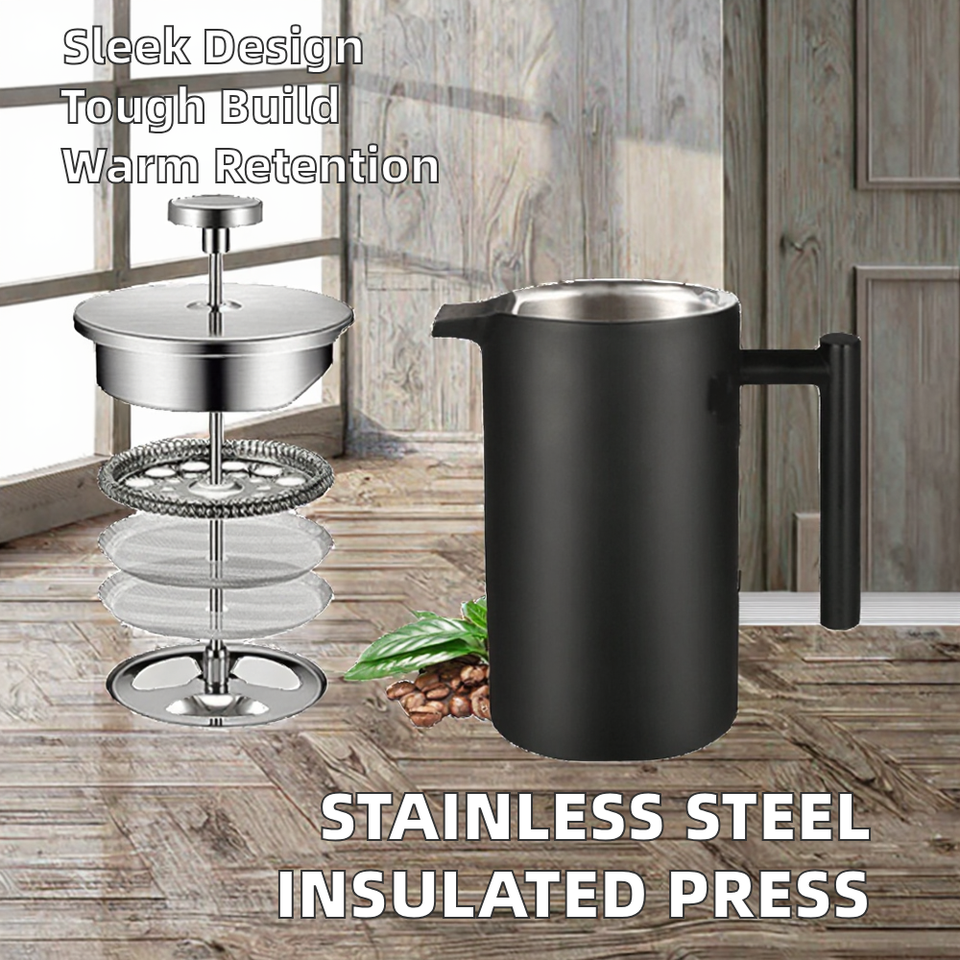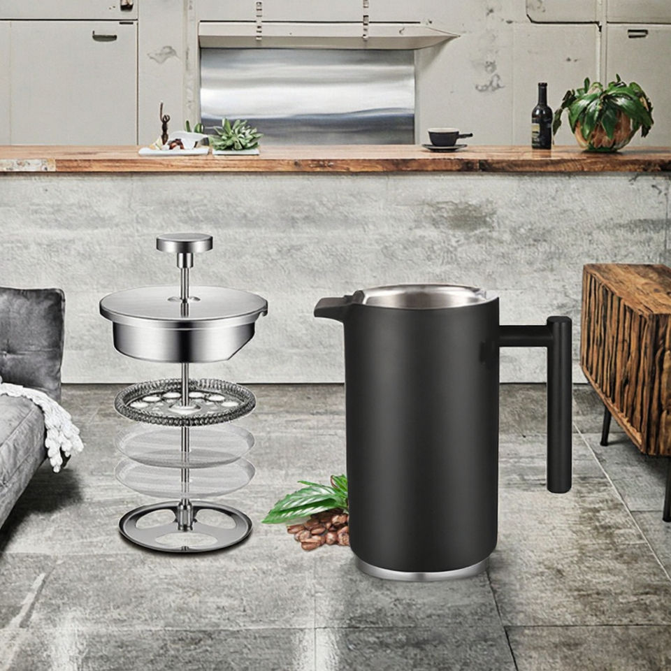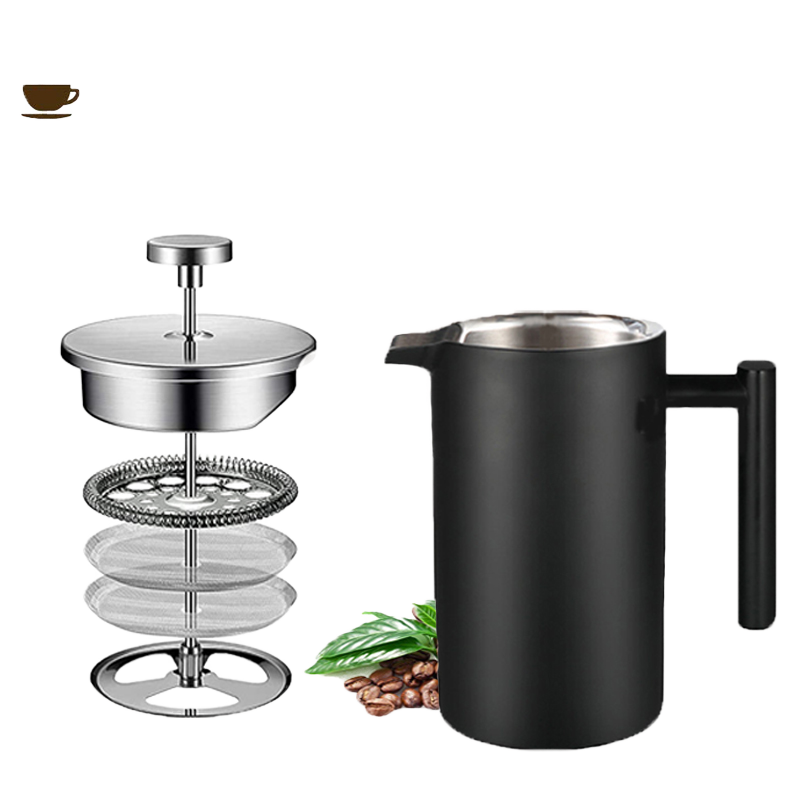 Cafetière à piston en verre à double paroi isolée, carafe à café écologique