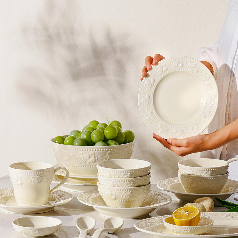 Vaisselle en céramique de haute qualité à décor sous glaçure, style français, pour usage domestique, cadeau de pendaison de crémaillère avec design anglais