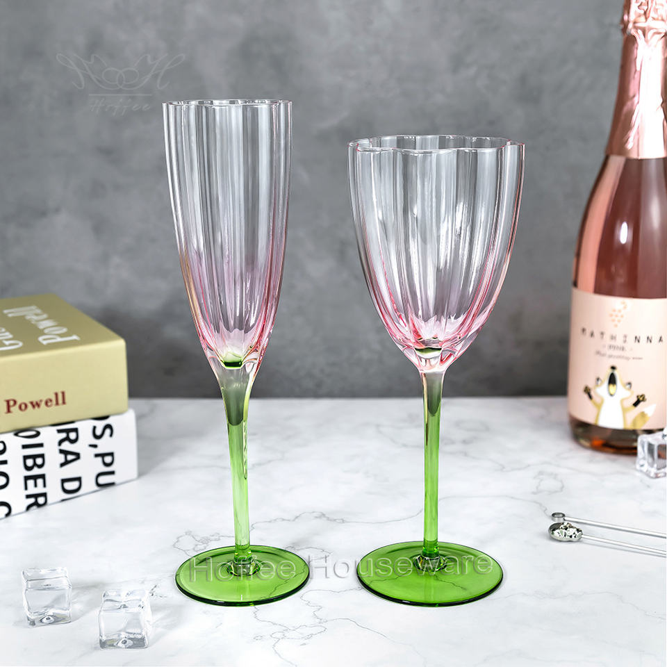 Flûte à champagne en verre en forme de fleur rétro française 240 ml, verre à vin rouge en cristal, couleur dégradée, sans plomb, verre à cocktail