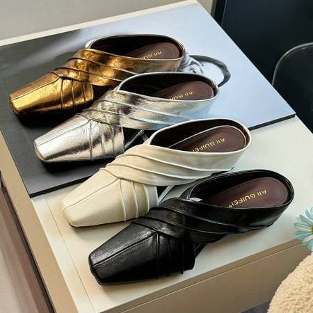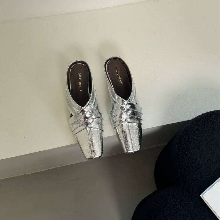 Mules Rétro Françaises à Bout Fermé pour Femmes, Talon Pog, Tendance Mode Printemps-Été-Automne, Semelle 3 cm, Cuir PU, Cristal LSYA16