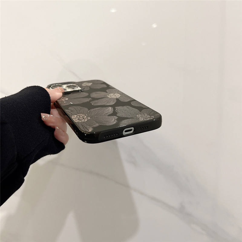 French Retro Cool Black Oil Painting Flower Phone Cases for iPhone 17 16 15 14 13 11 12 Pro Max Xr Xs Max 7 8 Plus Cute Cover