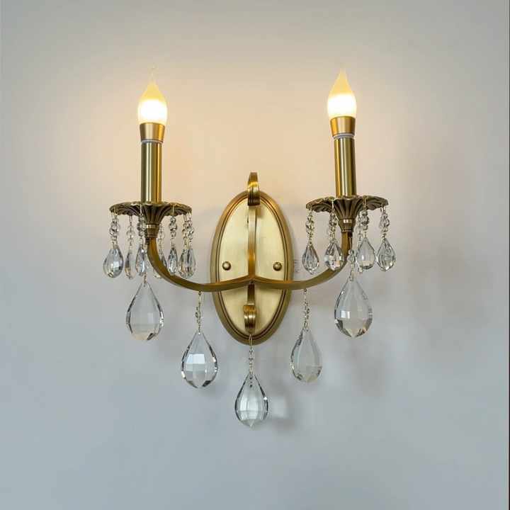 Applique Murale Rétro Française en Cuivre, Luxe Léger, Cristal K9, pour Salon, Chambre, Bureau, Couloir, Lampe Murale en Laiton, Lampe Frontale pour Miroir