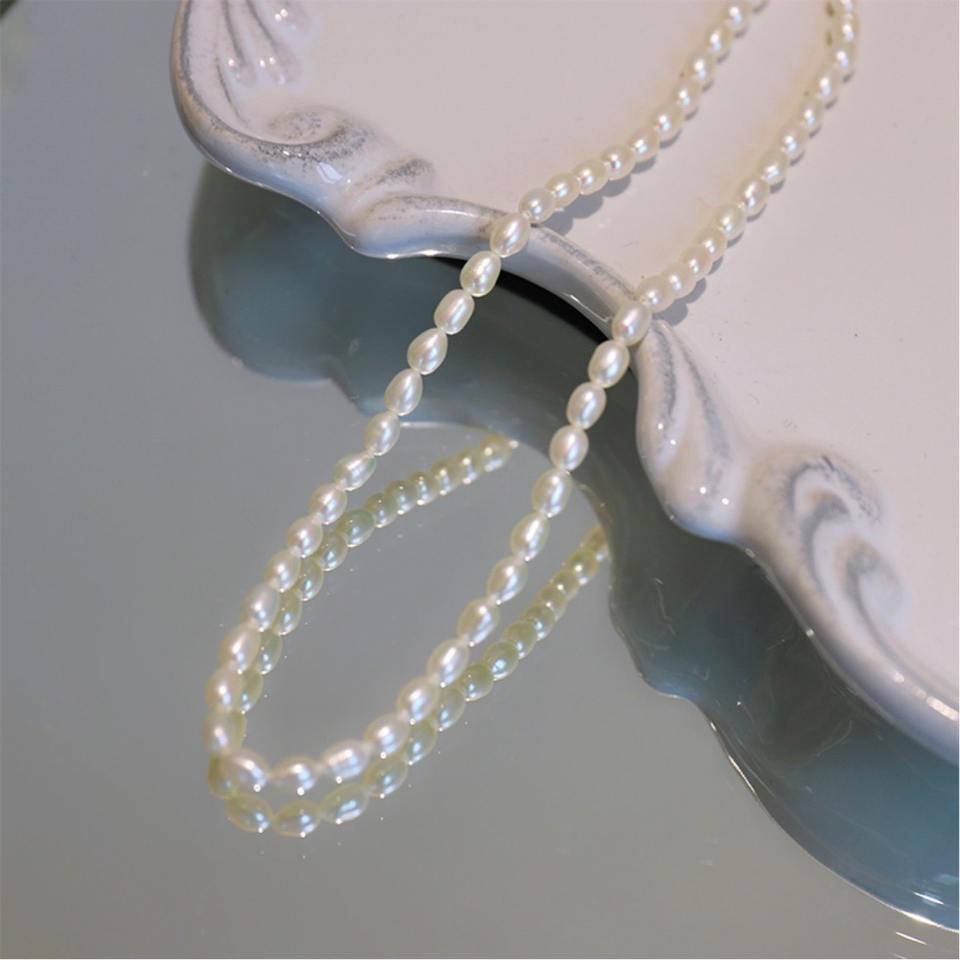 French Retro Elegant Casual Holiday Style Rice Grain Freshwater Small Pearl Necklace Luxurious Light Tempered Collarbone