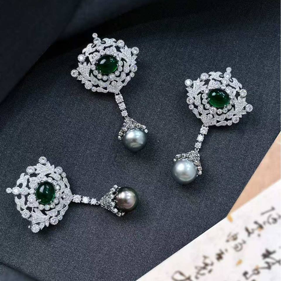 French Retro Palace Luxury Fine Brooch High-End Crystal Chest Flower with Tassel Pearl Elegant Pin Suit Dress Collar Accessory