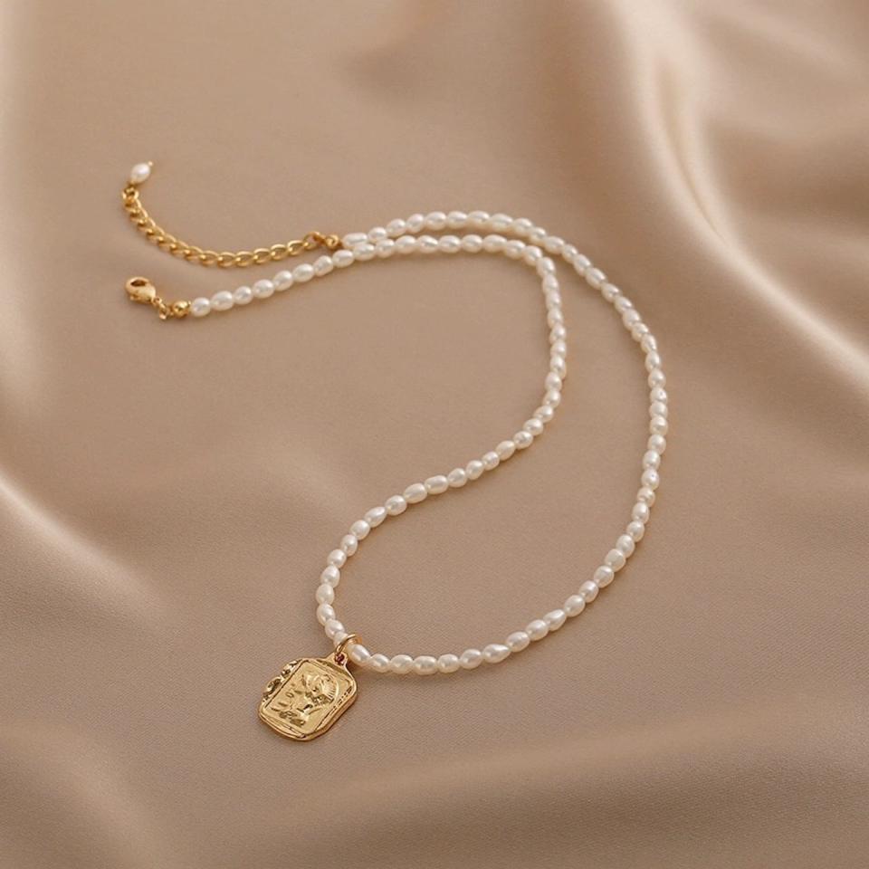 Collier ras du cou carré à motif de relief romain rétro français pour Xiaomi, pendentif de mode naturel