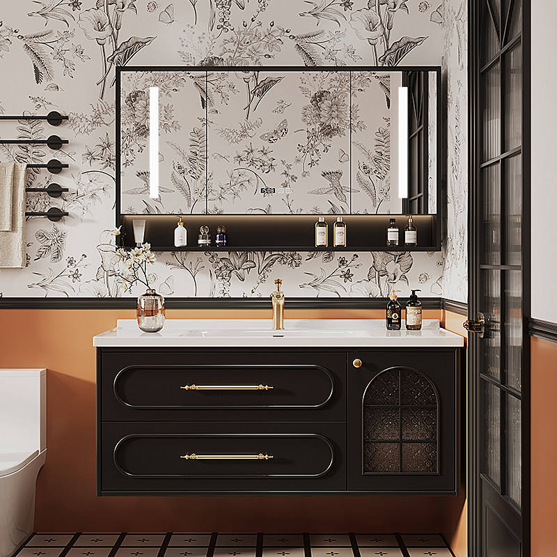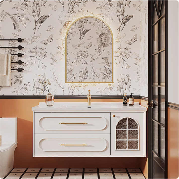 Meuble de rangement de salle de bain en bois massif de style rétro français avec peinture cuite de qualité supérieure, design vintage classique