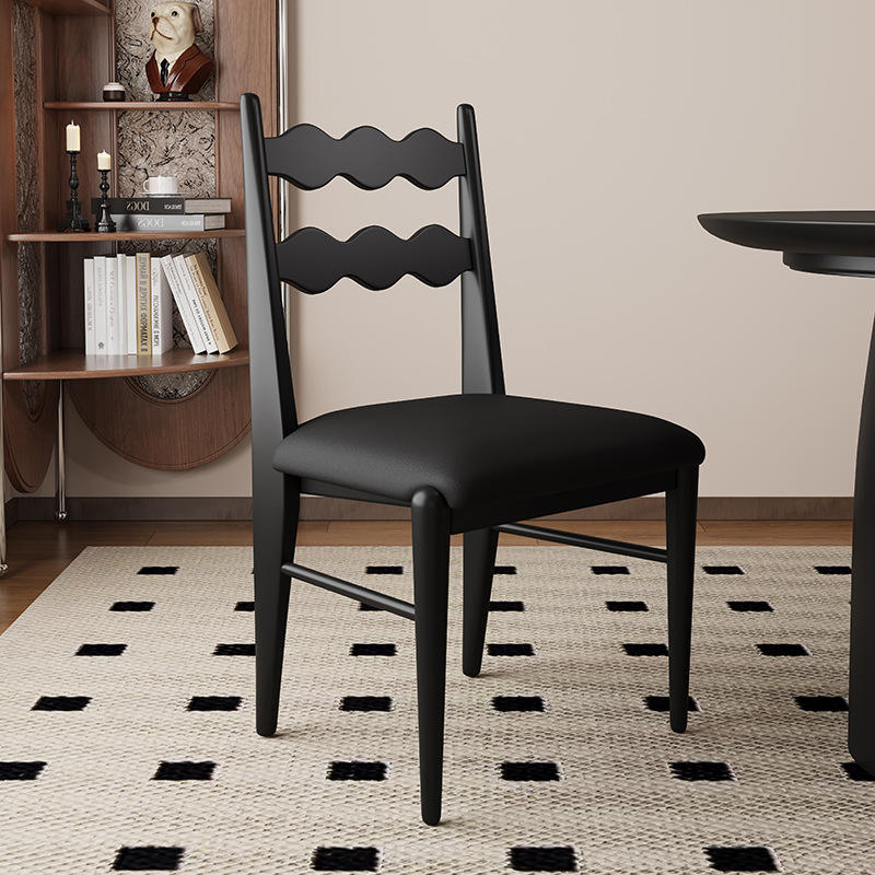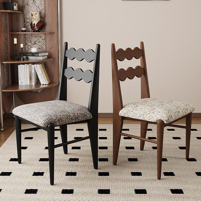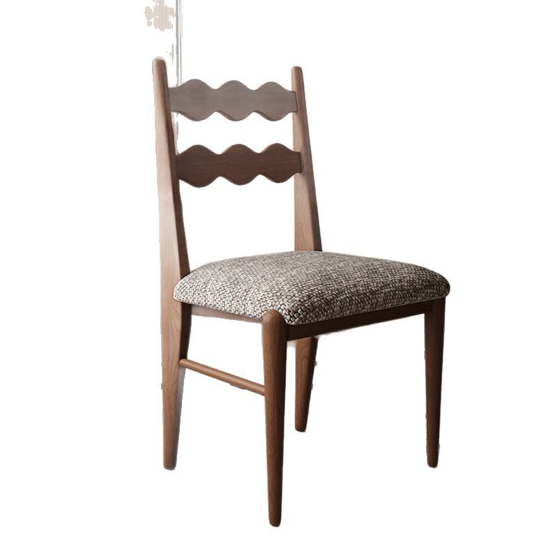 Chaise de salle à manger en bois massif de style rétro français, rembourrée en tissu de coton et de lin, pour usage en restaurant