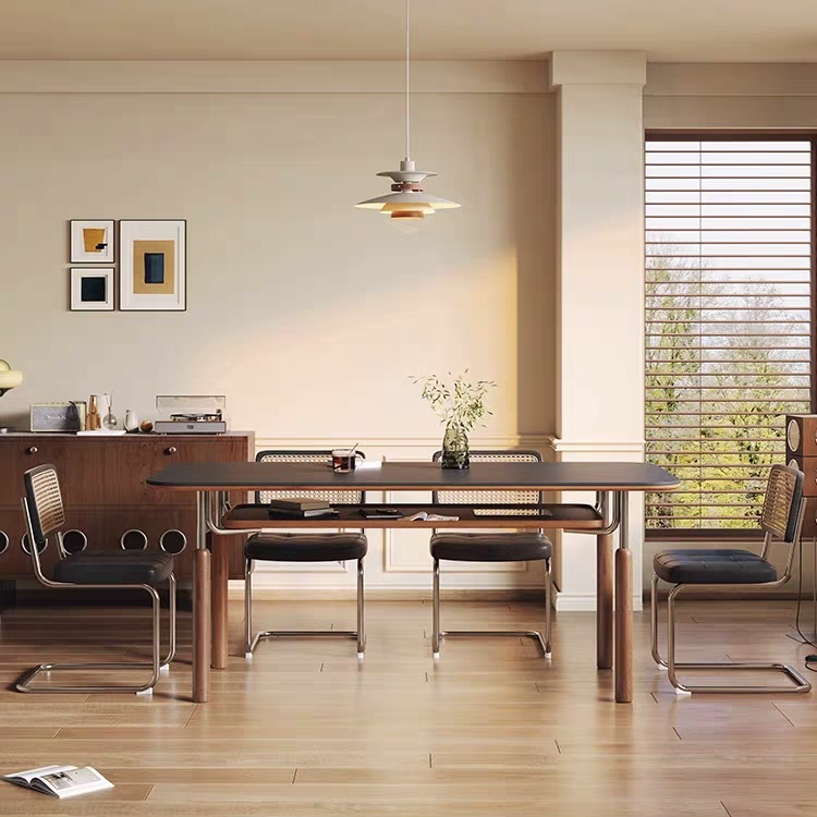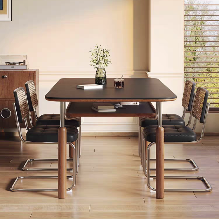 Ensemble de chaises de Table à manger en bois massif rétro français Support complet Dalle de roche Style design du milieu du siècle Usage domestique nordique américain