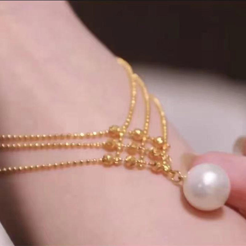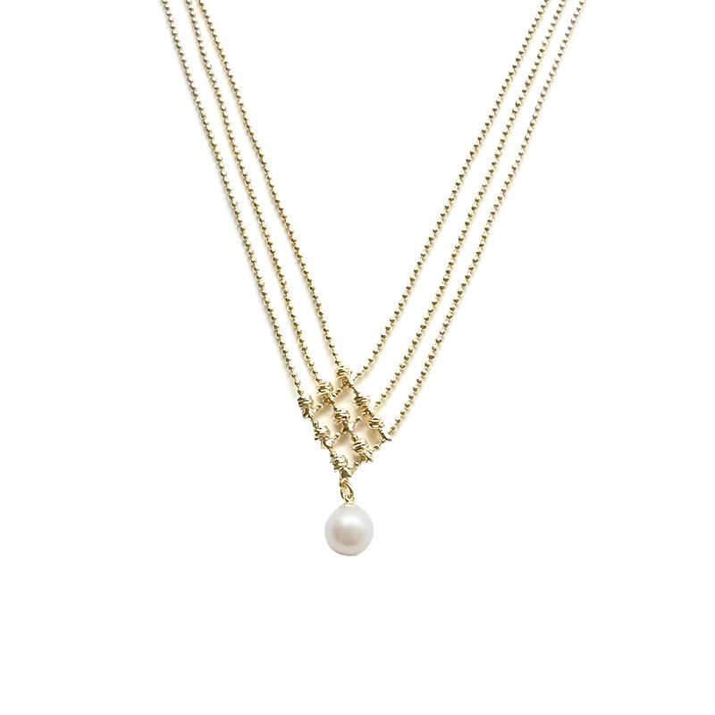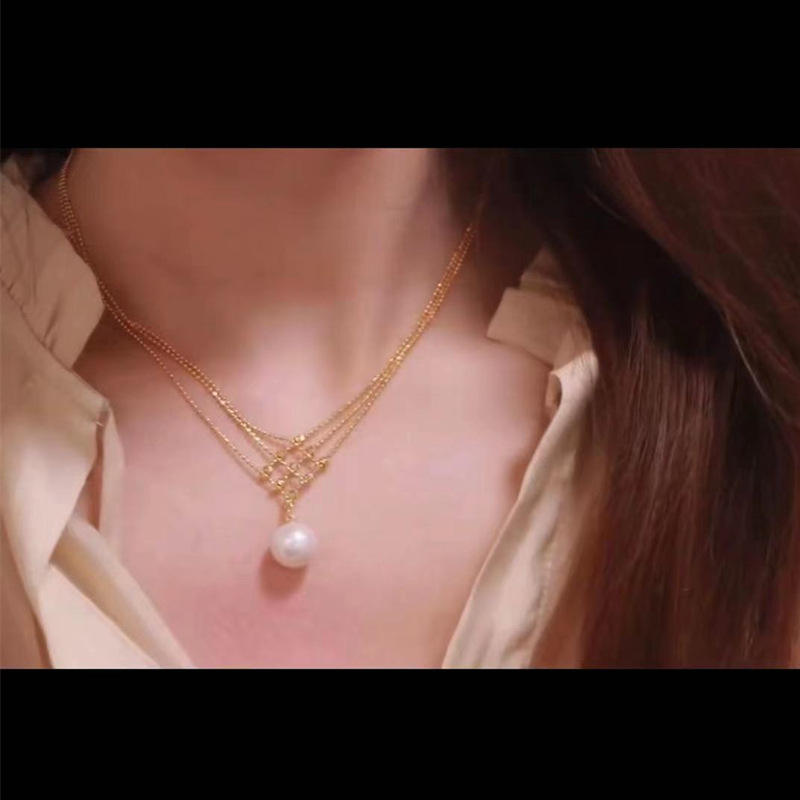 Collier de style rétro français plaqué or 14 carats, perle d'eau douce de haute qualité, tempérament simple, lumière intense, accessoire de cou de niche