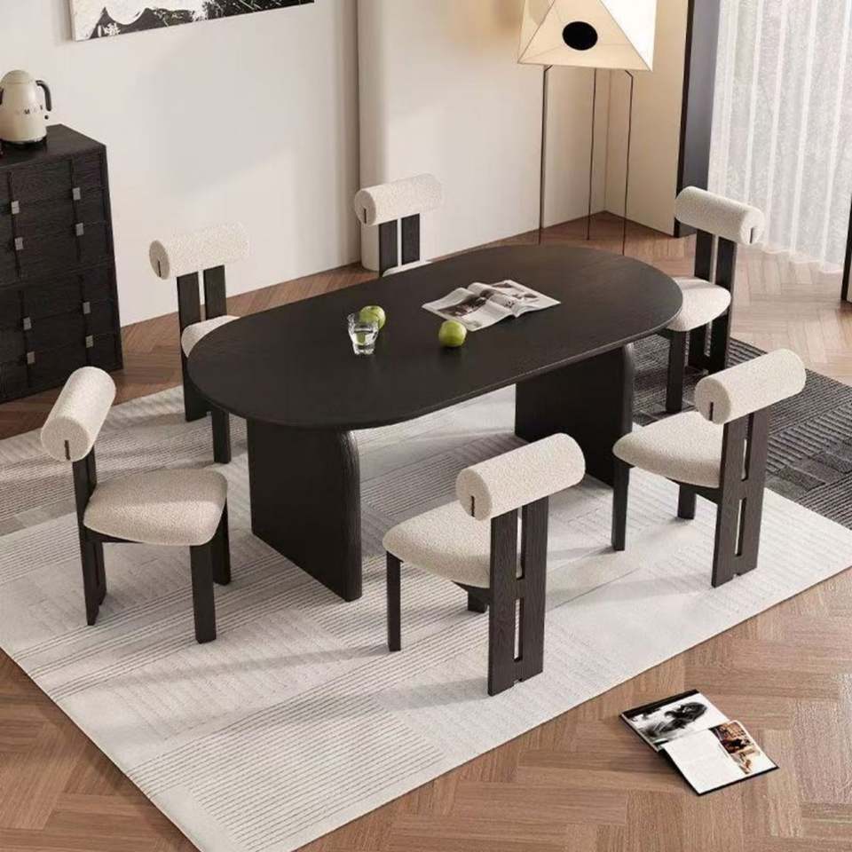 Ensemble table et chaises de salle à manger en bois massif noir de style rétro français, table ovale en bois de frêne pour petits salons