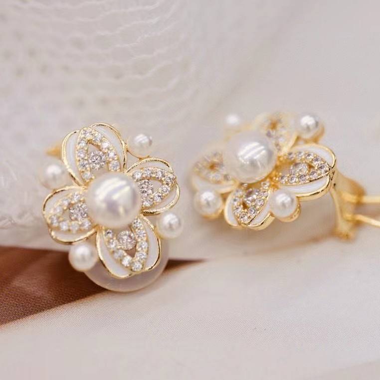 Boucles d'oreilles en perles d'eau douce de style rétro français Haoshi Camellia Micro-incrustées de perles Design de niche Pétales pour les trous d'oreille