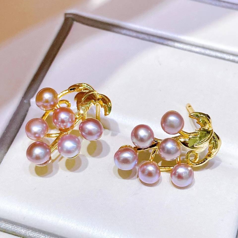 French Retro Style Light Luxury Purple Grape Freshwater Baby Pearl Earrings Niche Temperament