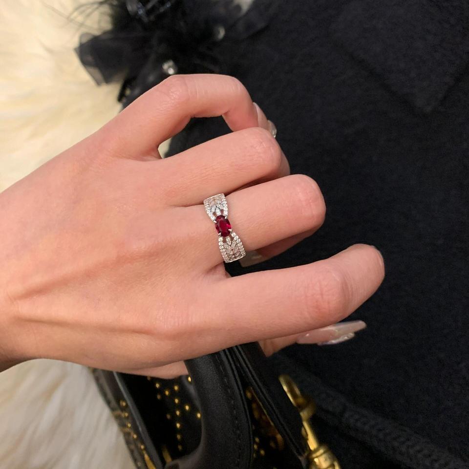 Bague de style rétro français en argent pur S925, motif d'épi de blé incrusté de rubis sang de pigeon et de diamants, nœud, luxe léger