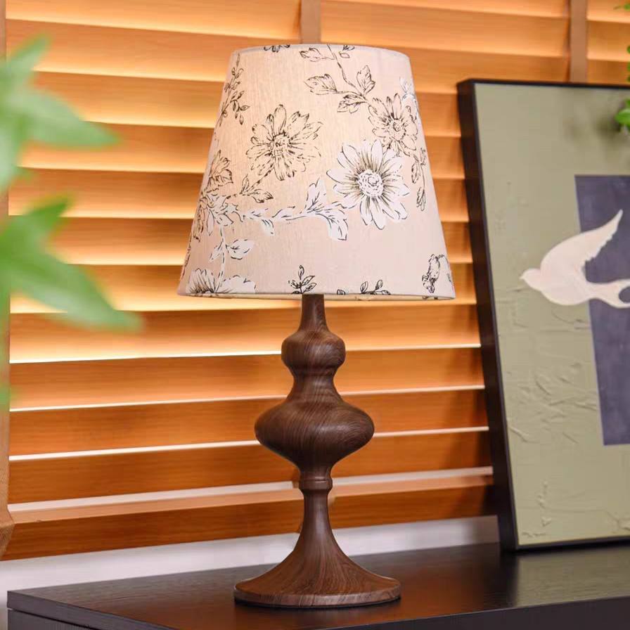 Lampe de table de style rétro français, abat-jour en forme de dôme, ambiance vintage minimaliste sophistiquée pour la chambre à coucher, bois massif, décoration de chevet